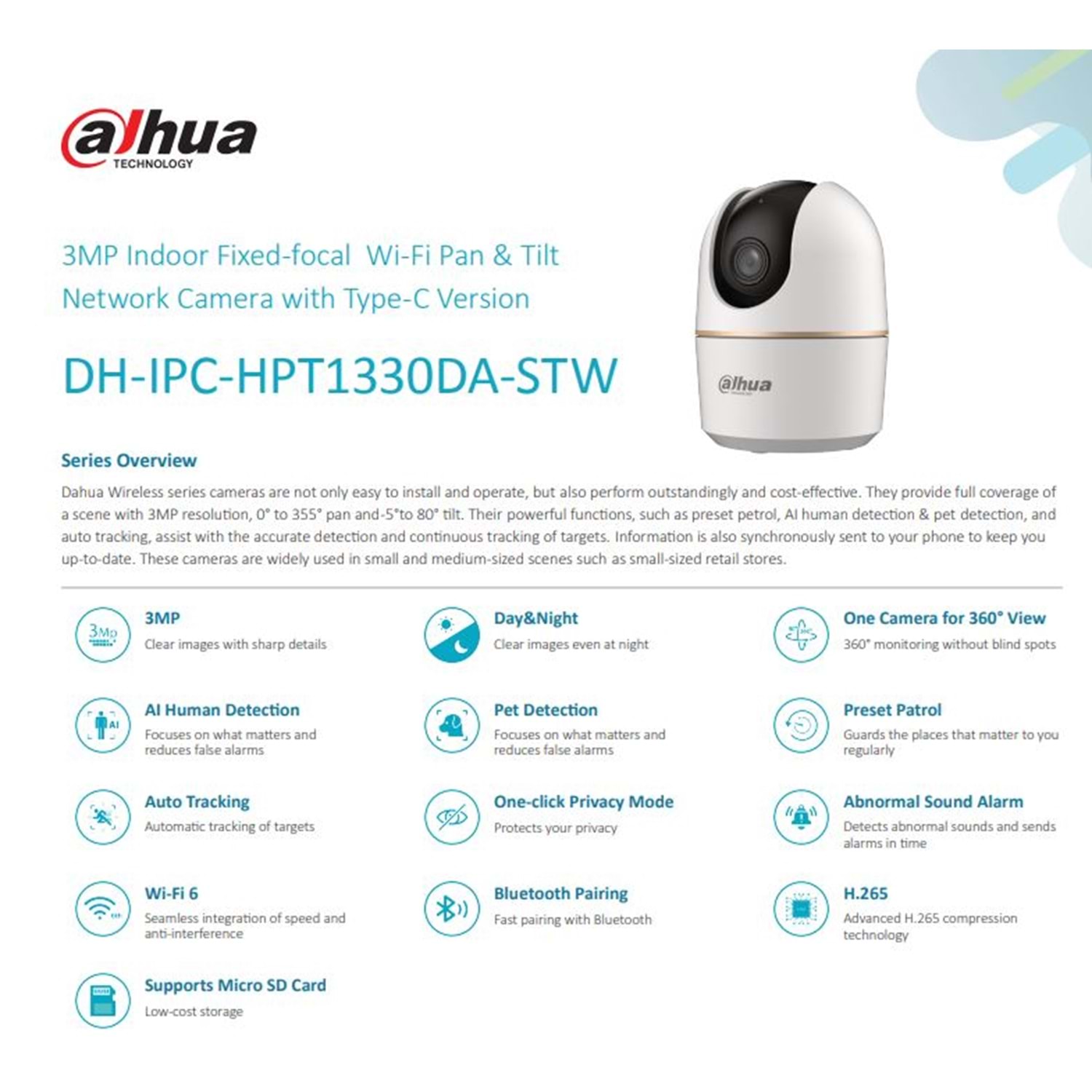 DAHUA DH-IPC-HPT1330DA-STW 3MP 0280 INDOOR WİFİ PT IP KAMERA