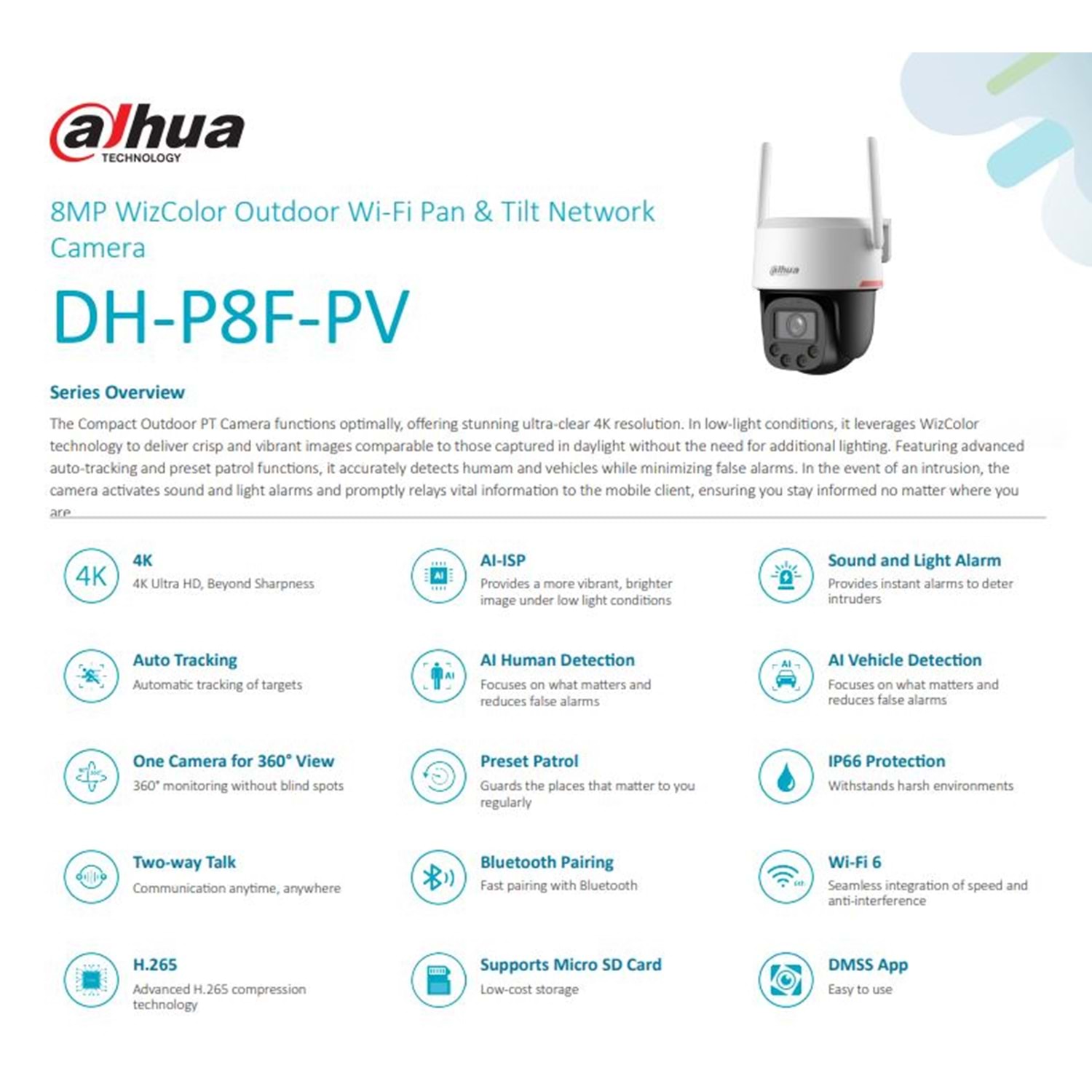 DAHUA P8F-PV-0360B-PRO 8MP WİRELESS PT IP KAMERA - PICOO F1